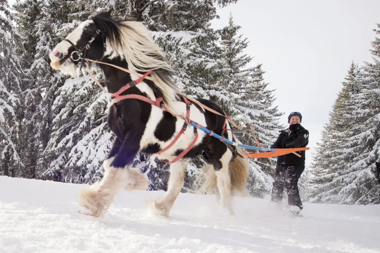 Astuce : Familiarisez-vous avec le cheval avant de commencer. Une connexion entre le skieur et l’animal améliore la fluidité et le plaisir de l’expérience.