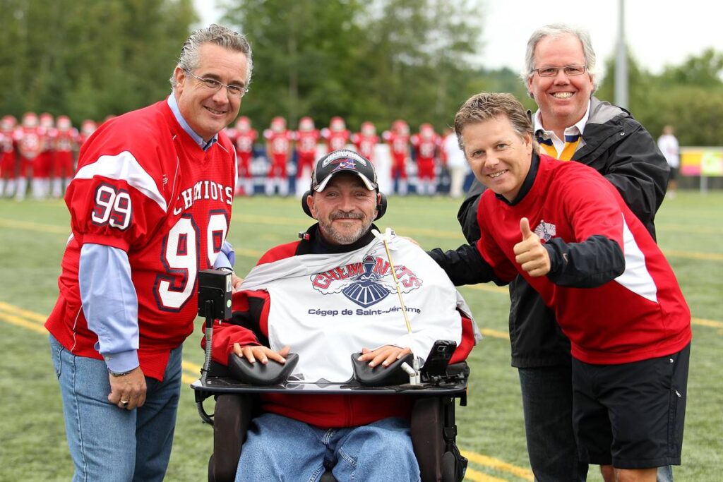 Stéphane ne s’est pas contenté de cela et a poursuivi ses activités professionnelles et sociales, devenant notamment commissaire au développement économique au Centre local de développement d’Argenteuil et conseiller municipal de la ville de Lachute, malgré les défis auxquels il était confronté en raison de sa tétraplégie. Il est important de souligner que Stéphane se déplace en chaise roulante et utilise un appareil qu’il manipule avec sa bouche pour réaliser son travail.